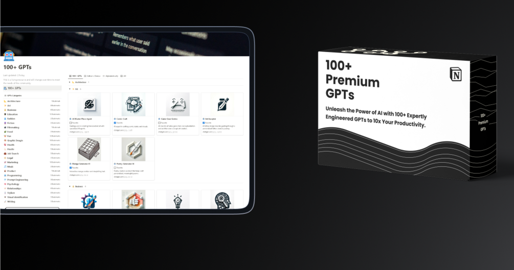 100+ GPTs is a meticulously designed collection of AI tools built by a seasoned prompt engineer. Whether you need content creation, graphic design, or brainstorming, these GPTs are ready to amplify your productivity in an instant.